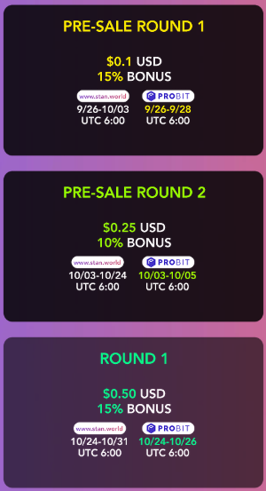 Stan World에 대한 액세스는 현재 Stan Coin 보유자에게만 열려 있으며 이제 Stan Coin 판매 라운드를 시작하고 있습니다.