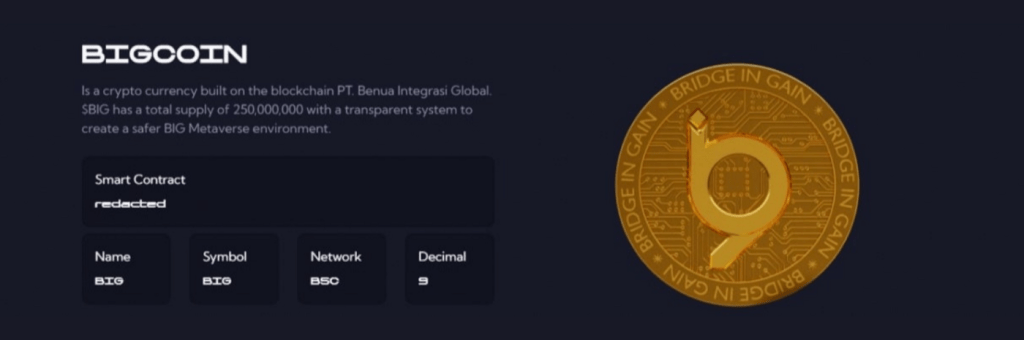 BIG Coin Is a cryptocurrency built on the blockchain PT. Continent of Global Integration. $BIG has a total supply of 250,000,000 with a transparent system to create a more secure BIG Metaverse environment.